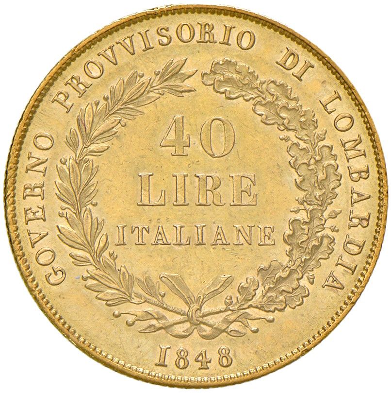 40 lire italiane 1848. Pagani 211. Montenegro 423. ORO, gr. 12,9 c. Raro. SPL
