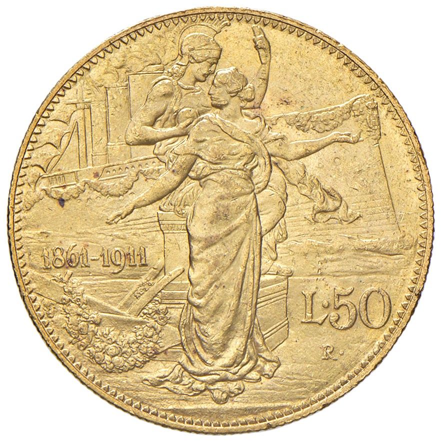 50 lire 1911, Cinquantenario Unità d'Italia. Pagani 656. Montenegro 34. ORO, gr. 16,10 c. SPL