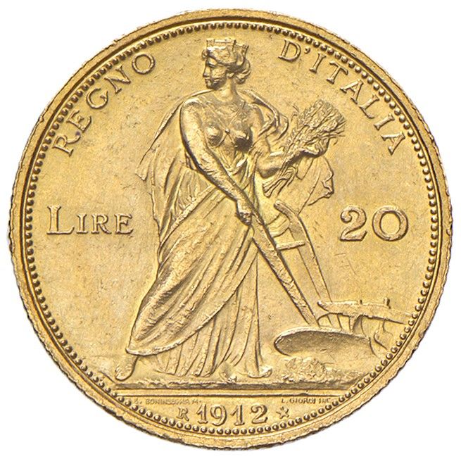 20 lire 1912. Pagani 667. Montenegro 51. ORO, gr. 6,45 c. Rara. SPL