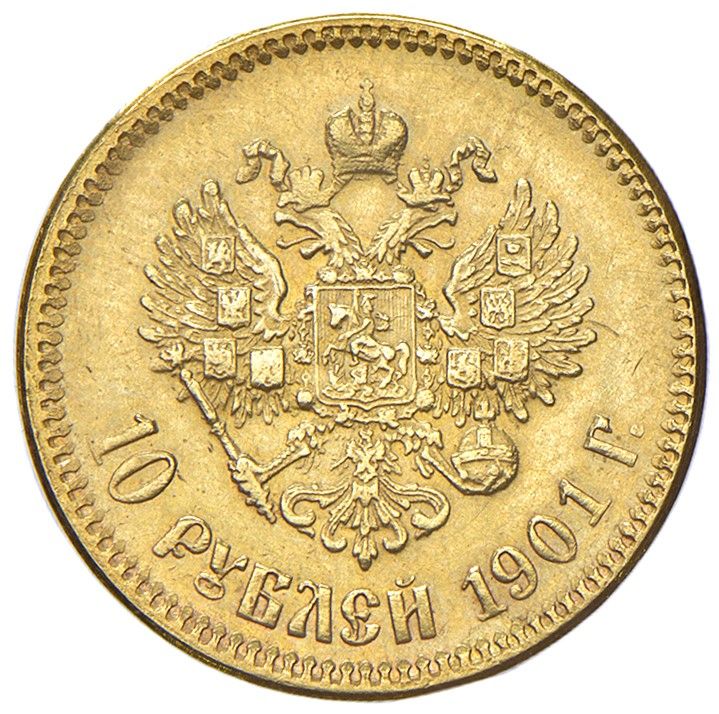 10 rubli 1901. Y. 64. ORO, gr. 8,60 c. BB/SPL