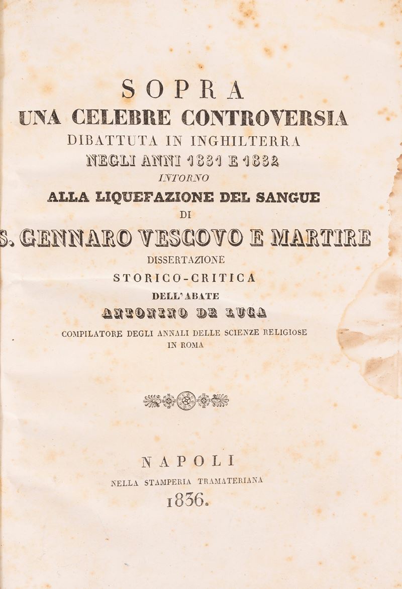 Sopra una celebre controversia dibattuta in Inghilterra...intorno alla liquefazione del sangue di San Gennaro Vescovo e Martire, 1836