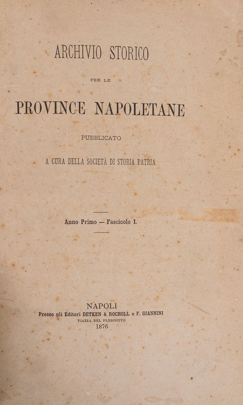 Napoli, Detken & Rocholl e F. Giannini, 1876-1896. In 8°. 20 voll. numerati I-XXI. Mancante il vol. XX relativo all'anno 1865. Brossure originali conservate entro belle legature in marocchino verde con angoli e carta marmorizzata, titoli in oro al dorso.