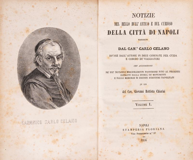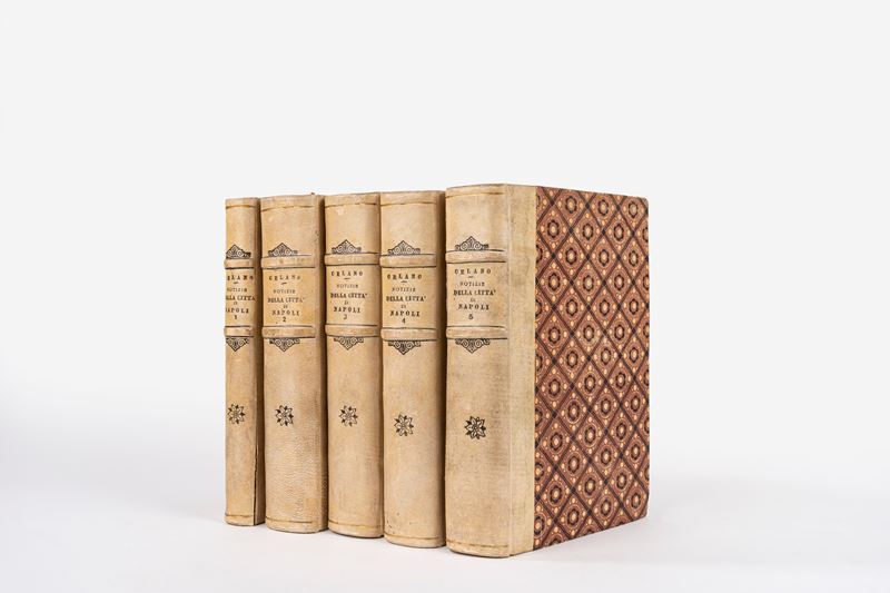 Napoli, Stamperia Floriana, 1856-60. In 8°. Ritratto dell'Autore, tavole incise di cui alcune ripiegate, (restauro alla tav. ripiegata al I volume e strappo senza perdita ad una tav. ripiegata del 2 vol.), lievi fioriture e arrossature, legature in mezza pergamena e carta decorata, titolo in nero al dorso.
