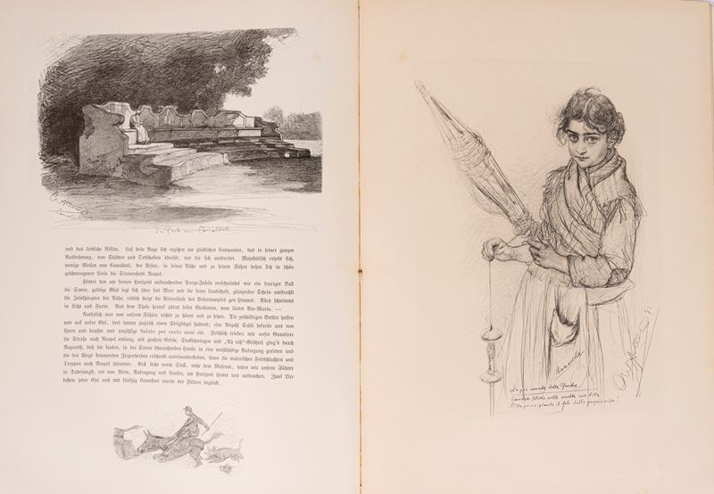 Stuttgart & Berlin, Union deutsche Verlagsgesellschaft, [1893]. In 2°. Con 11 tavole, 59 illustrazioni a piena pagina e 204 illustrazioni nel testo, il tutto a colori, qualche rara fioritura, legatura editoriale in tela rossa con piatto illustrato a colori, titolo in oro, qualche lieve difetto.