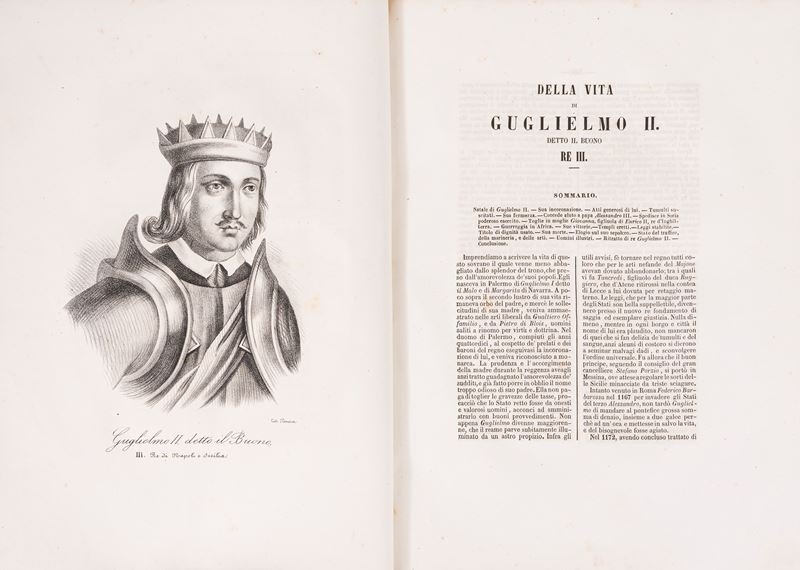 Napoli, G. Nobile, 1849. In 2°. Con numerose tavole incise in rame che ritraggono i regnanti, qualche lieve fioritura, legatura coeva in mezza pergamena con angoli, titolo entro tassello al dorso, lettere e stemma cartacei al piatto anteriore.