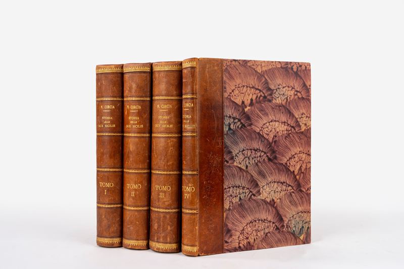 Napoli, Tipografia Virgilio, 1843-52. In 8°. 4 voll. Esemplari in barbe in ottime condizioni, legatura coeva in mezza pelle e carta marmorizzata, titolo in oro e fregi al dorso liscio, lievissimi segni del tempo.