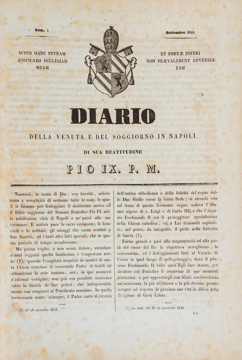 Diario della venuta e del soggiorno in Napoli di Sua Beatitudine Pio IX, 1849