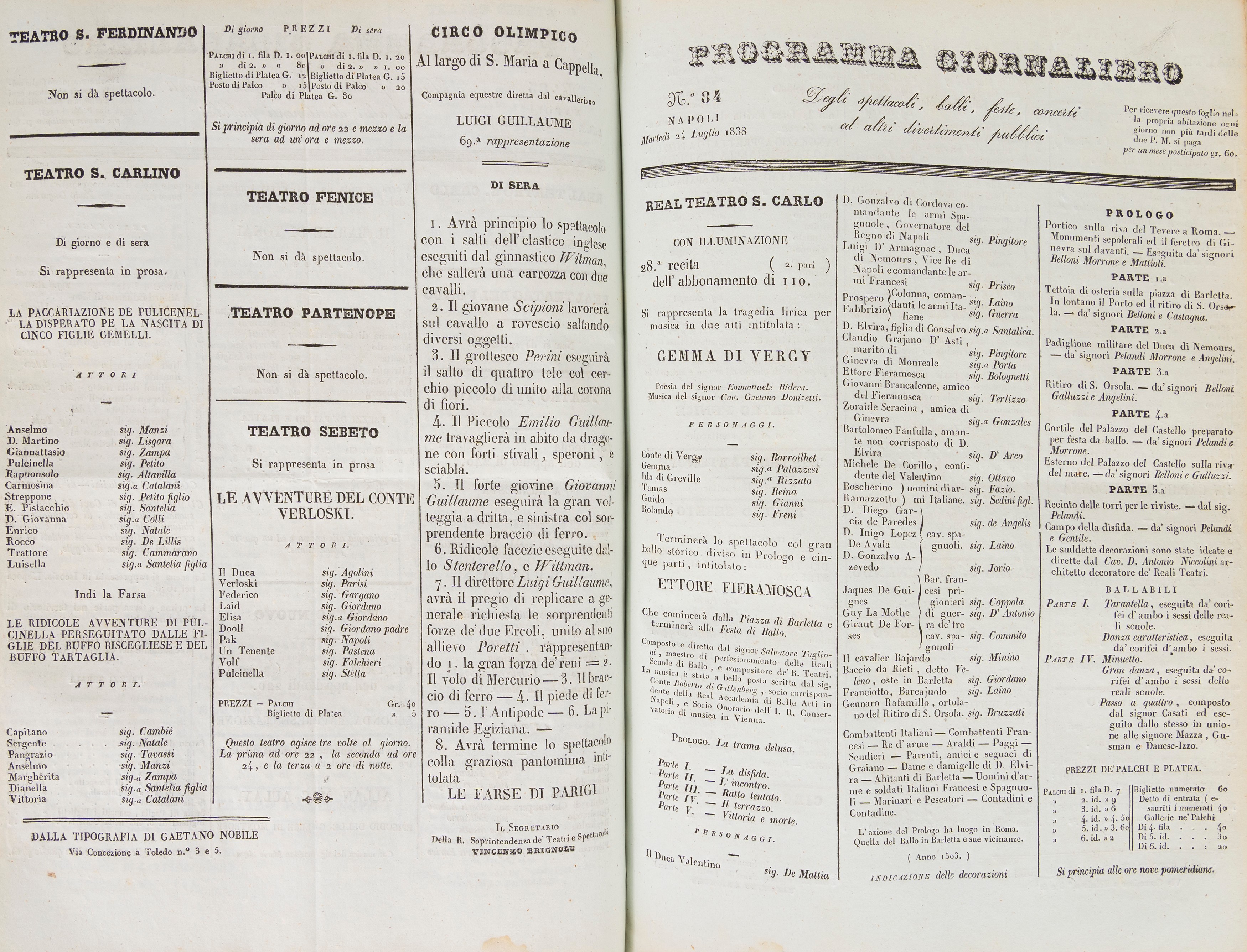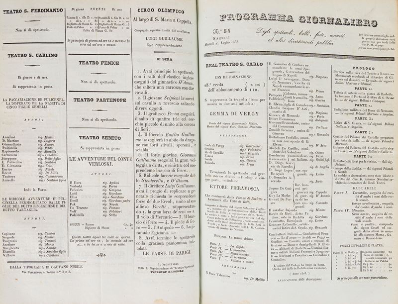 Programmi giornalieri degli spettacoli dati ne' teatri di Napoli dal giorno di Pasqua di Resurrezione 1838, a tutto il Sabato di Passione del 1839, 1838