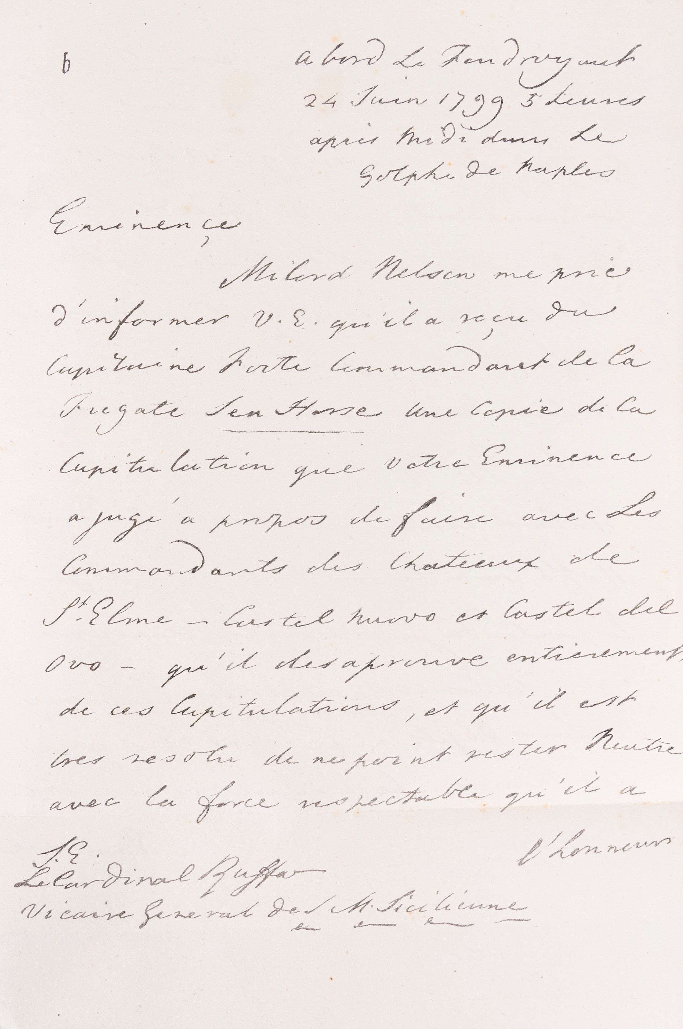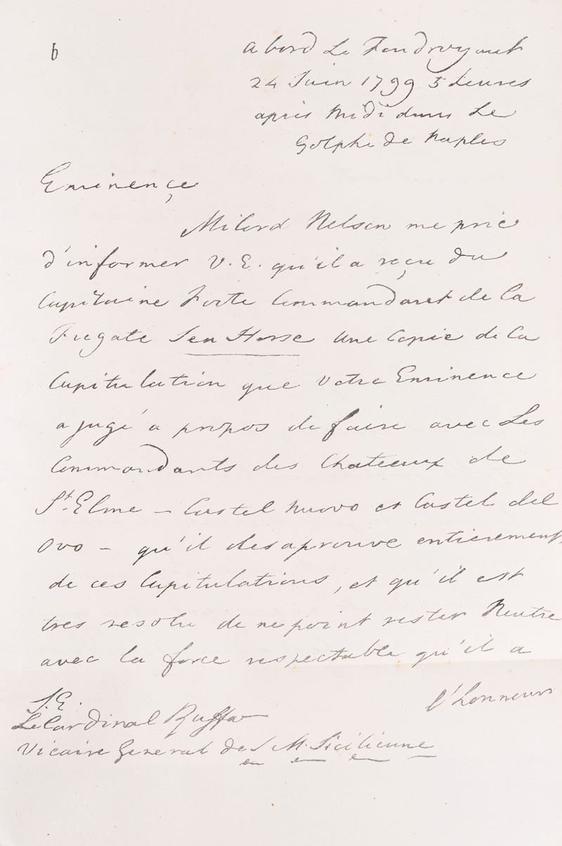 Napoli, Luigi Pierro, Libraio-editore, 1899. In 8°. Legatura in mezza pelle con angoli e piatti marmorizzati, titolo in oro al dorso con 4 nervi. § Abate Sacchinelli D., Memorie storiche sulla vita del Cardinale Fabrizio Ruffo, Napoli, dalla tipografia di Carlo Cataneo, 1836. In-8°, 4 tavole di documenti in facsimile in fine, fioriture sparse. Legatura in mezza pelle rossa con decorazioni in oro. Difetti e mancanze al dorso.
