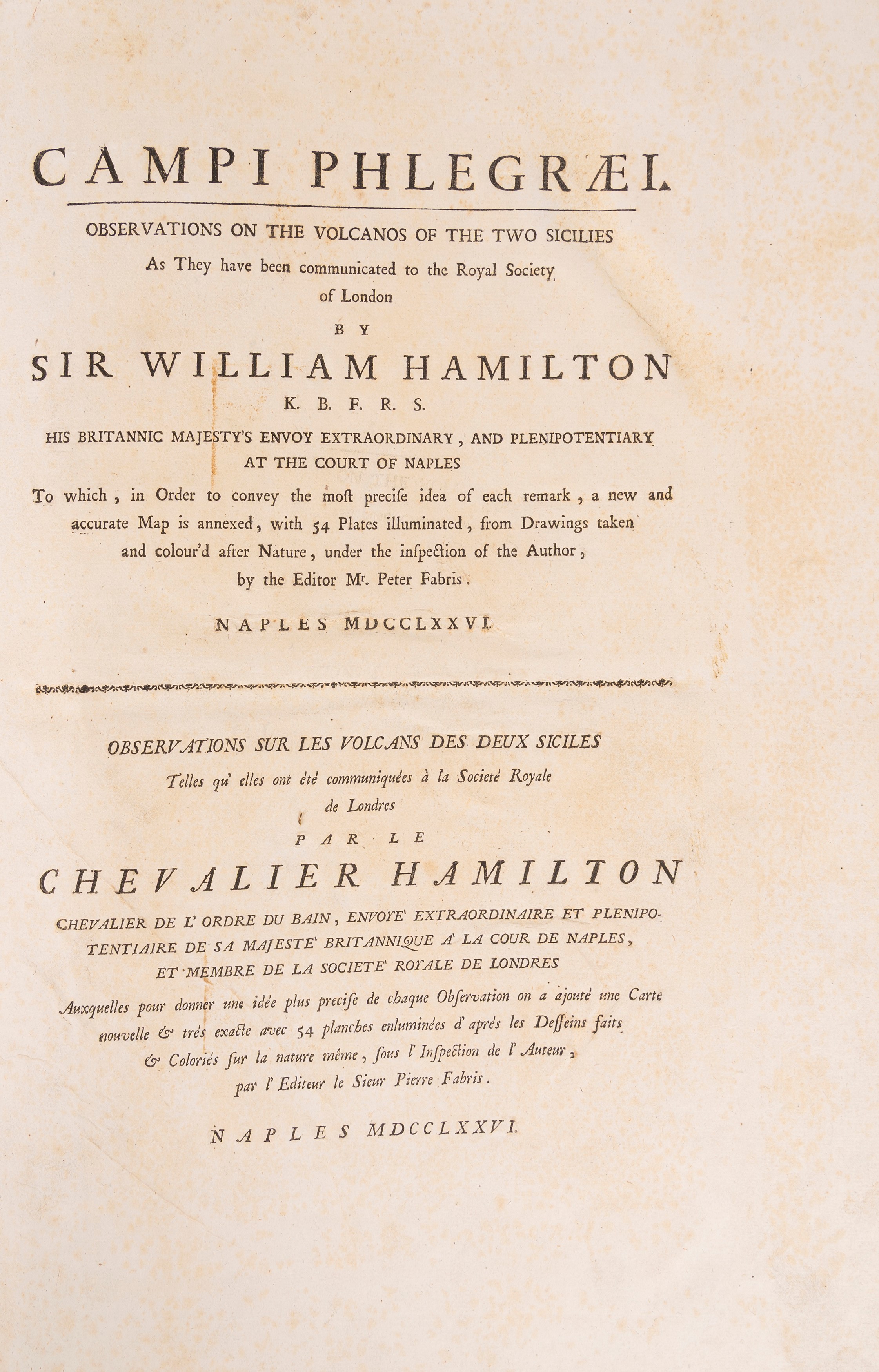 I Campi Phlegraei rappresentano il punto più alto dell’attività vulcanologica di Sir William Hamilton (1730–1803), diplomatico, geologo e raffinato uomo di cultura, che fu ambasciatore britannico presso il Regno di Napoli dal 1764 al 1800.