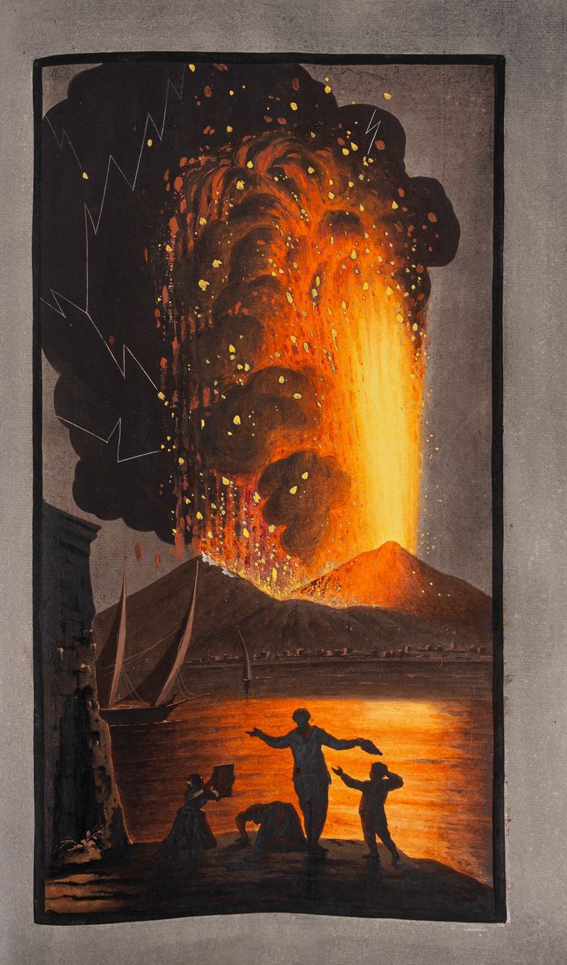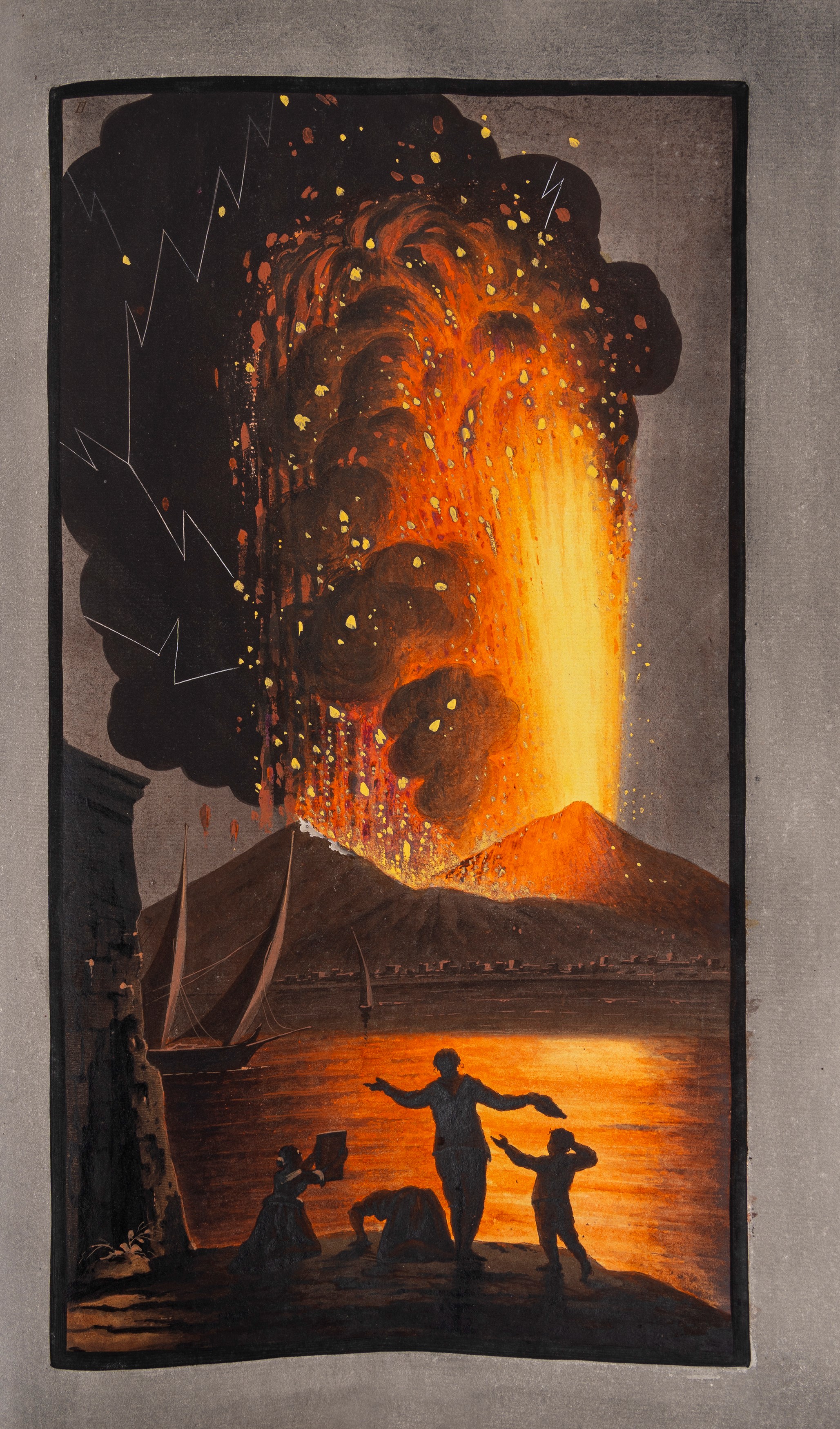 Stabilitosi a Napoli, Hamilton rimase profondamente colpito dalla potenza e dalla spettacolarità del Vesuvio, al quale dedicò anni di osservazioni dirette, ascensioni rischiose e una documentazione sistematica senza precedenti. Tra il 1766 e il 1779 inviò numerose lettere alla Royal Society di Londra, di cui era membro, nelle quali registrò con rigore scientifico le eruzioni, le trasformazioni del paesaggio e i fenomeni vulcanici dell’area napoletana. Da questo materiale nacque l’opera, concepita non solo come resoconto scientifico, ma anche come tentativo di trasmettere al pubblico l’esperienza diretta del vulcano e della sua forza primigenia. Il titolo Campi Phlegraei, si riferisce all’ampia regione vulcanica che comprende Napoli e i suoi dintorni, ma l’indagine di Hamilton si estende anche ad altri importanti complessi vulcanici del Sud Italia, come le isole Eolie e l’Etna, conferendo all’opera un respiro geografico e scientifico più ampio. Il metodo adottato da Hamilton, fondato sull’osservazione diretta e sulla descrizione accurata dei fenomeni naturali, segnò una svolta decisiva nella storia della vulcanologia, offrendo una spiegazione chiara e innovativa del ruolo dei vulcani nella formazione e nel modellamento della superficie terrestre.