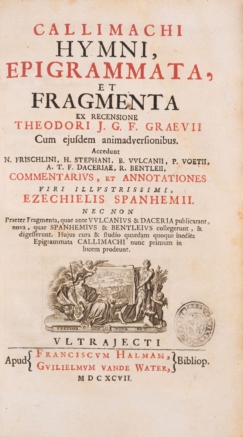 Amsterdam, Halman - vande Water, 1697. In 8°. 198 x 116 mm. 2 voll. Antiporta allegorica, frontespizio in rosso e nero, tavole nel testo, bruniture e fioriture, legatura coeva in piena pergamena. Ex libris con timbretto nobiliare.
