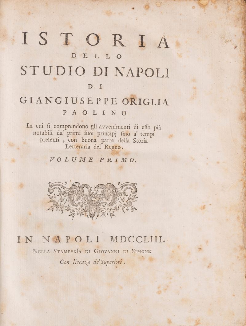 Istoria dello studio di Napoli... In cui si comprendono gli avvenimenti di esso più notabili, 1753