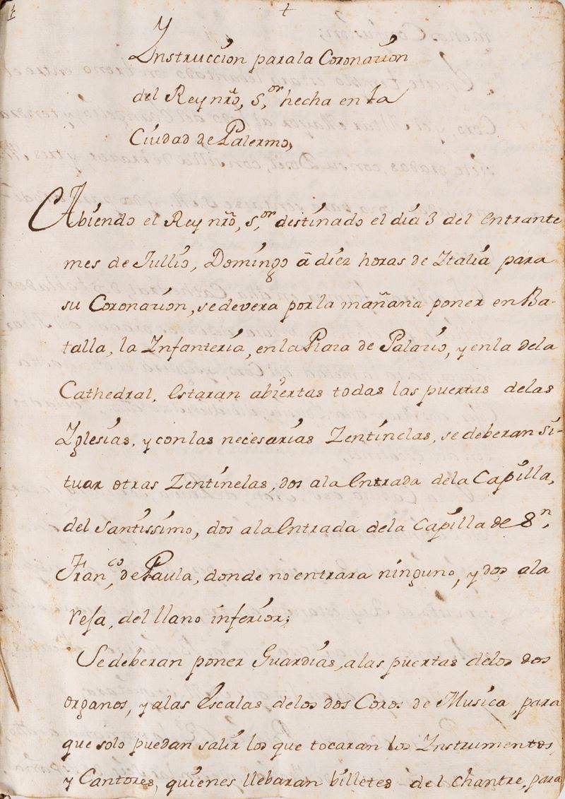 Instruccion para la Coronazion del Reynio, S.or hecha en la Ciudad de Palermo, 1735