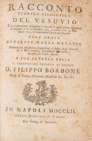 Racconto storico-filosofico del Vesuvio e particolarmente di quanto è occorso in quest'ultima eruzione principiata il dì 25. ottobre 1751. e cessata il dì 25. febbrajo 1752. al luogo detto l'Atrio del Cavallo, 1752