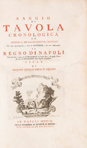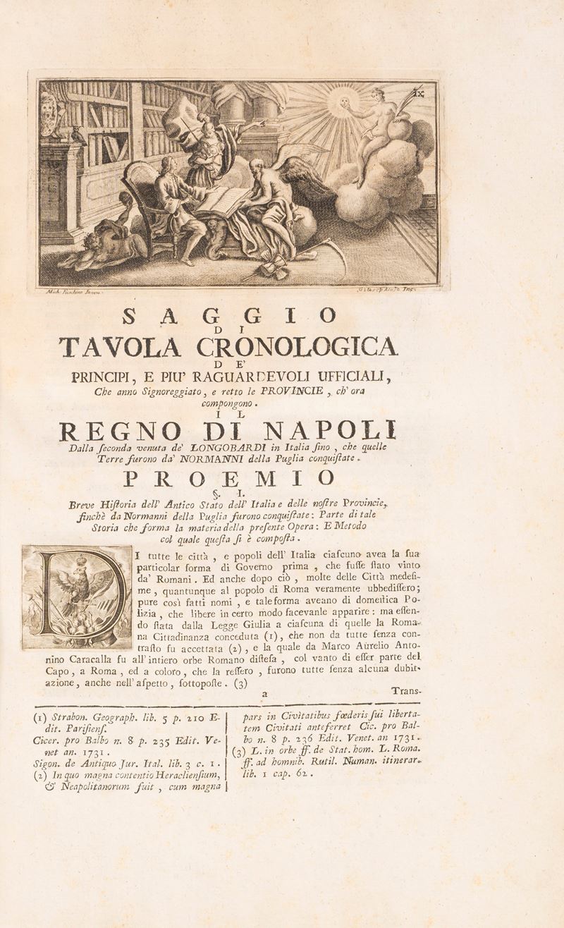 Saggio di tavola cronologica de' principi e più ragguardevoli ufficiali che anno signoreggiato, e retto le provincie, che ora compongono il regno di Napoli, 1762
