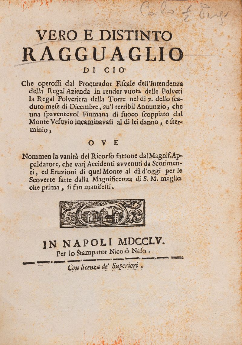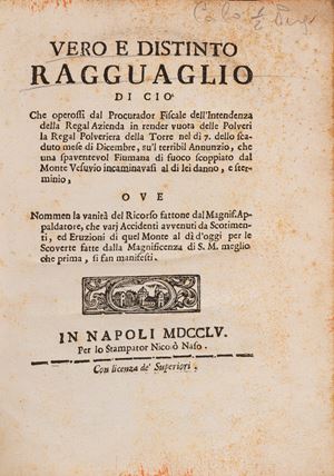 Vero e distinto ragguaglio di ciò che operossi dal Procurador Fiscale dell'Intendenza della Regal Azienda di render vuota delle Polveri la Regal Polveriera della Torre, 1755