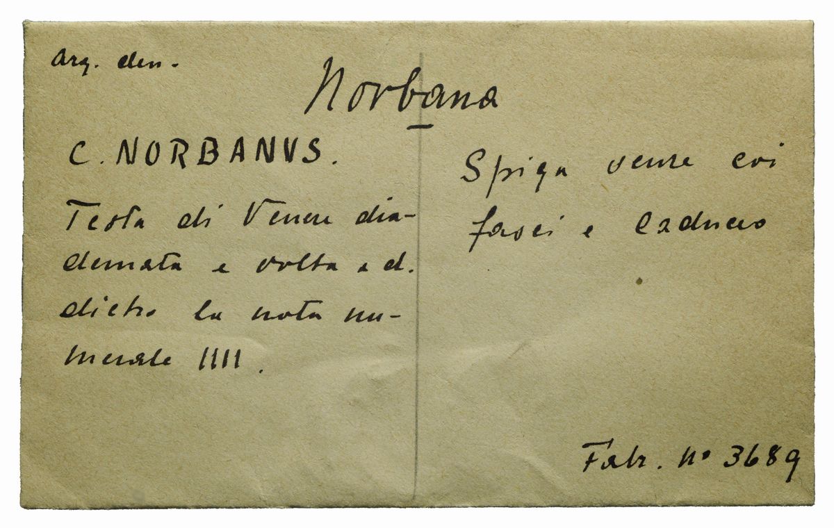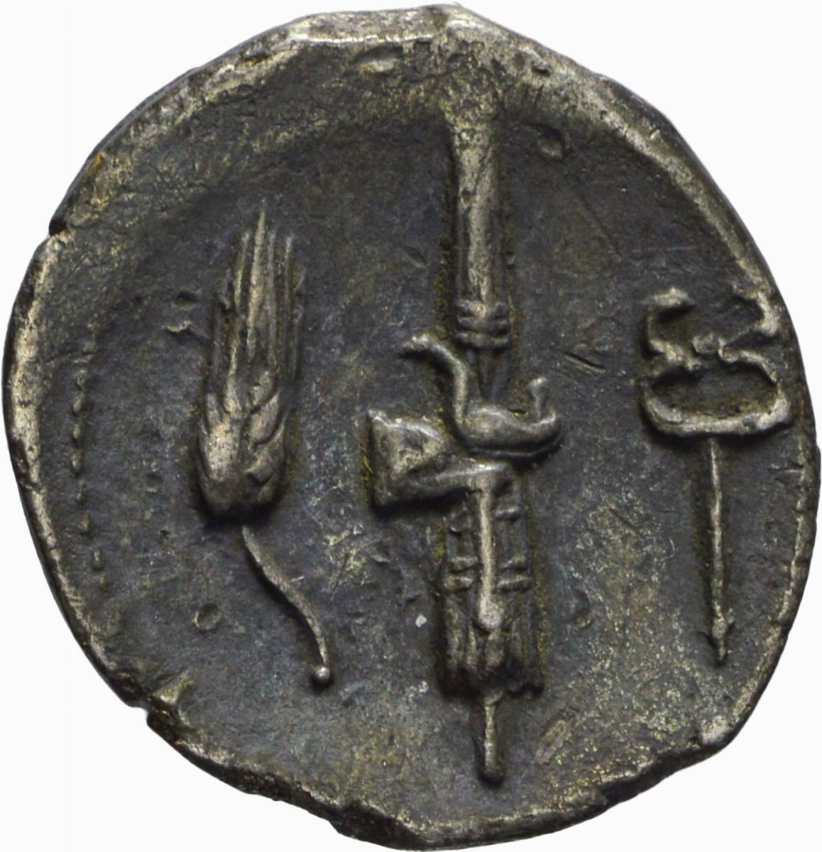 D/ testa diademata di Venere a destra, R/ spiga, fascio, caduceo, Zecca di Roma, Rif. bibl. Craw, 357/1a; Bab., 1; Metallo: AR, gr. 3,85, Diam.: mm. 17,07. mBB