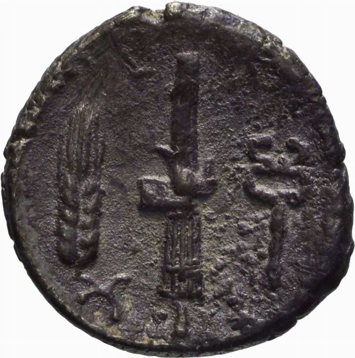 D/ testa diademata di Venere a destra, R/ spiga, fascio, caduceo, Zecca di Roma, Rif. bibl. Craw, 357/1a; Bab., 1; Metallo: AR, gr. 4,09, Diam.: mm. 19,11. BB