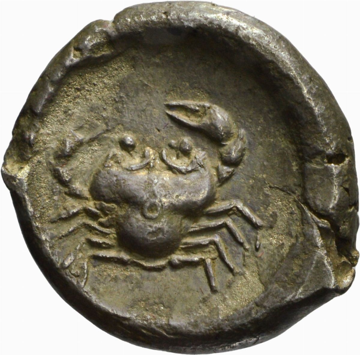 D/ gallo stante a sinistra; R/ granchio in area leggermente incavata, Zecca di Himera, Rif. Buceti 16/R2; Metallo: AR, gr. 8,41, Diam.: mm. 19,66. mBB