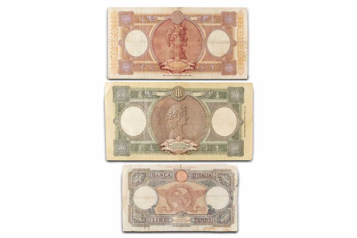 10.000 Lire "Repubbliche Marinare"; 5.000 Lire "Repubbliche Marinare - Testina"; 100 Lire "Roma Guerriera". Da MB a BB