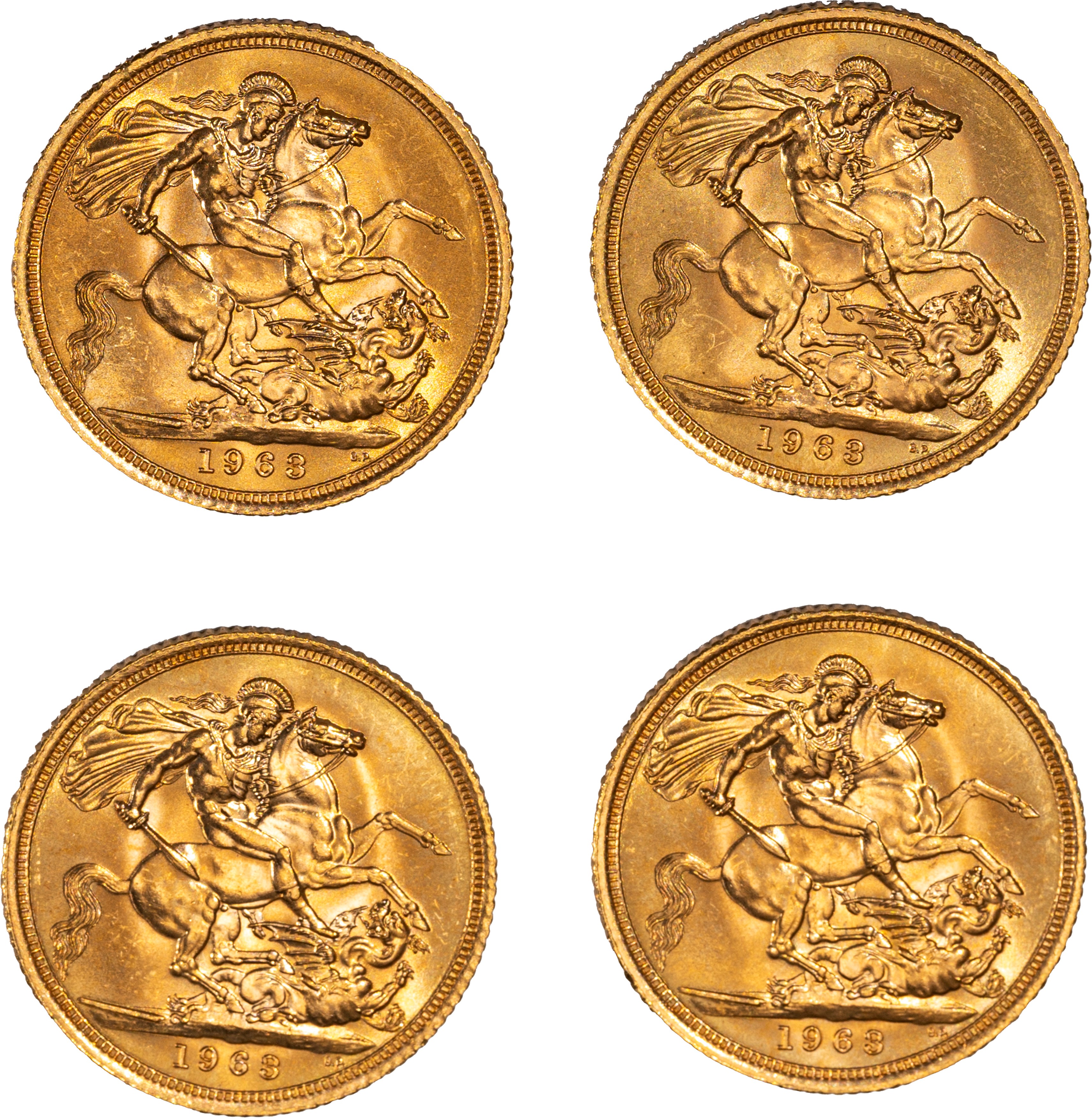 D/ effigie della Regina a d. R/ San Giorgio a cavallo trafigge il drago a d., Zecca di Londra; Metallo: AV, peso totale gr. 31,99. SPL.
