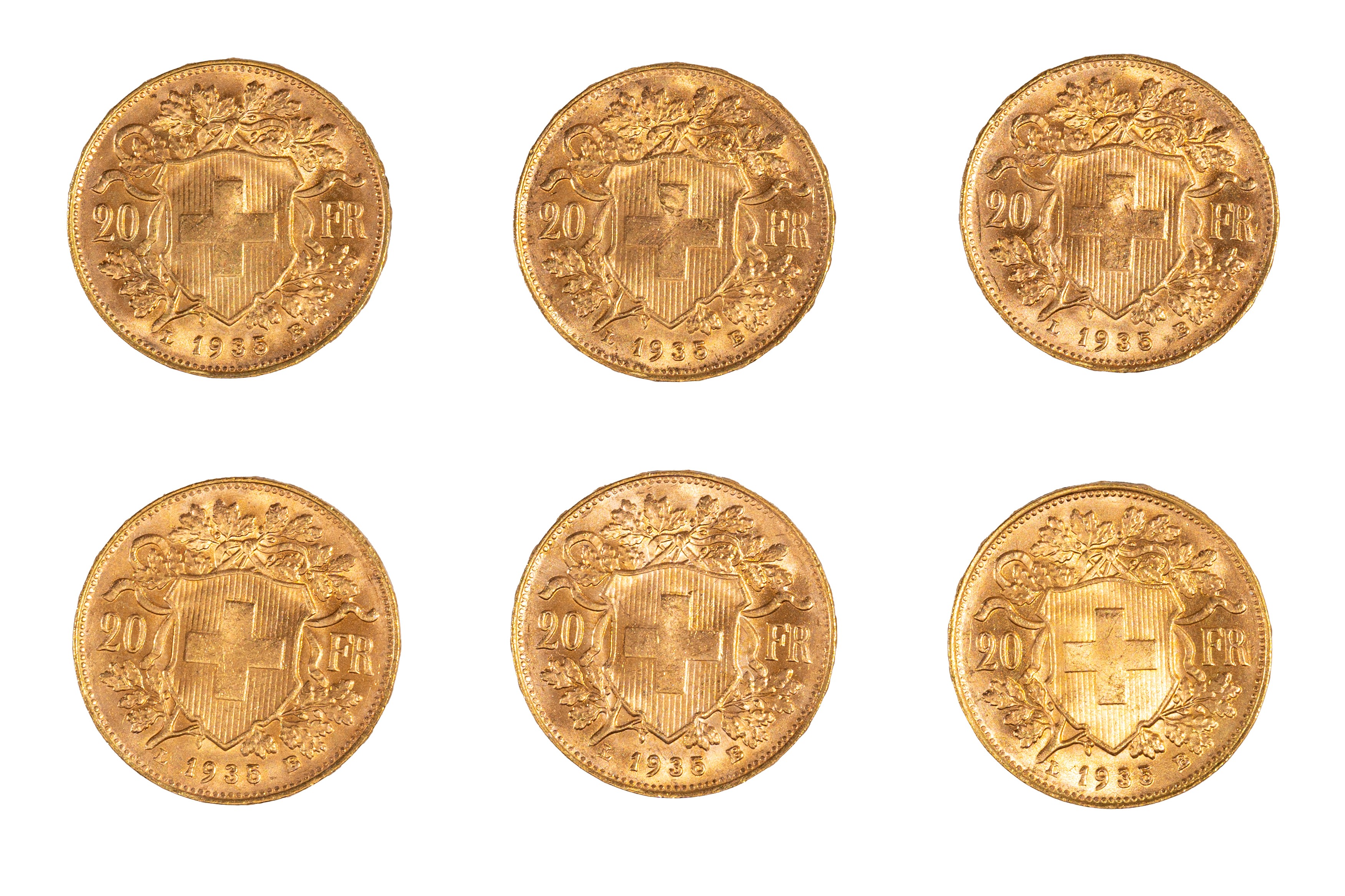 Stato Federale Svizzero - lotto di 6 monete da 20 Franchi, 1935