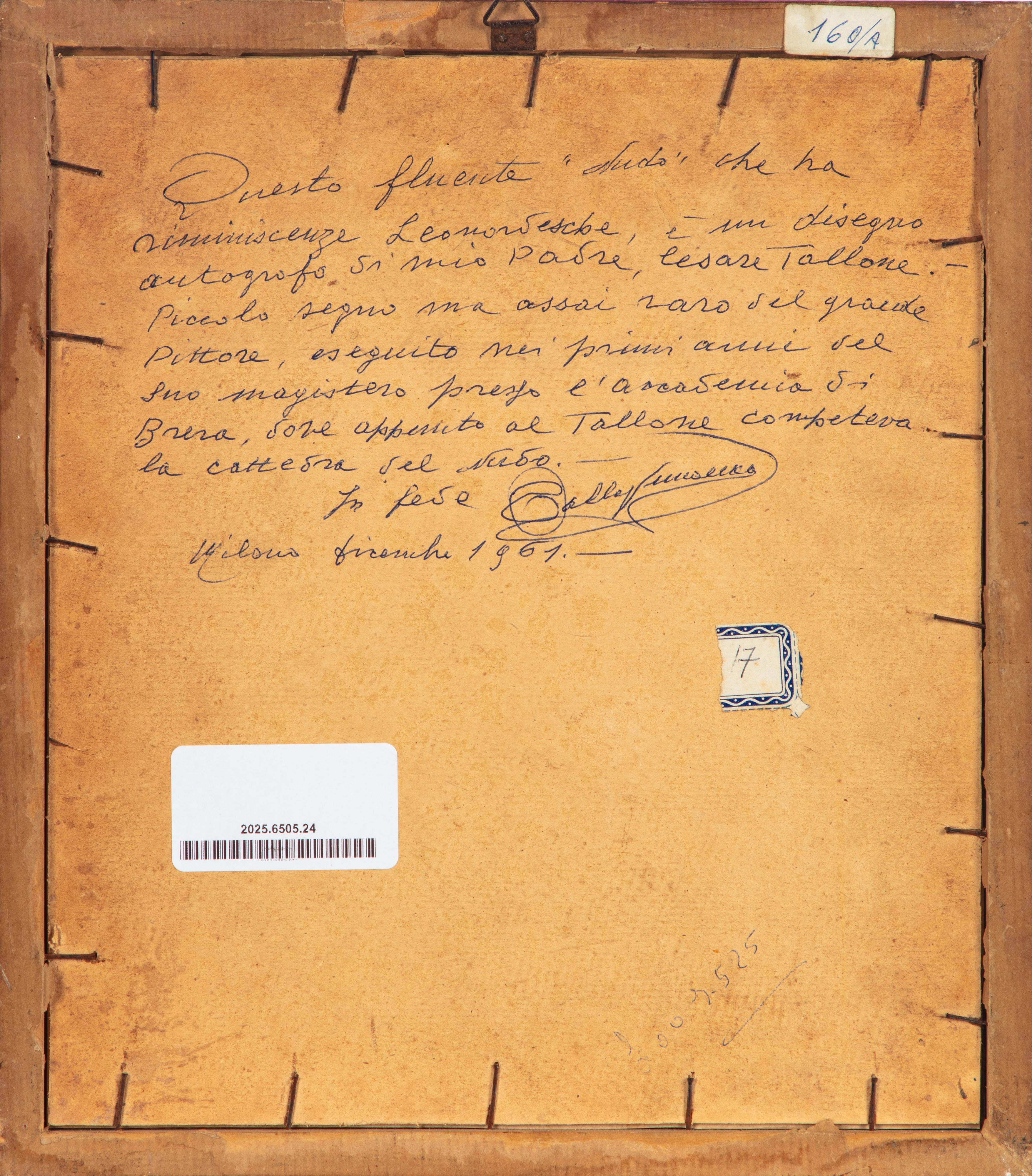 al retro iscrizione per autentica del figlio con data 1961