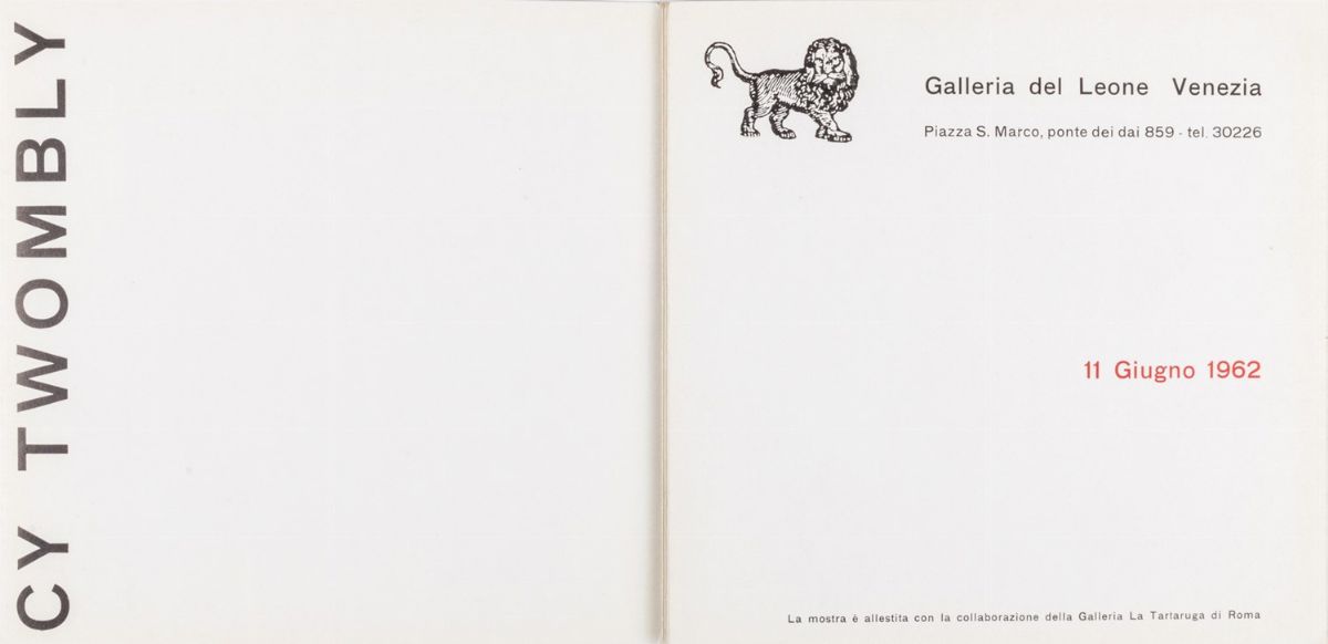 15 copie dell'Invito alla mostra personale, Galleria del Leone, Venezia con la collaborazione della Galleria La Tartaruga, Roma giugno 1962.