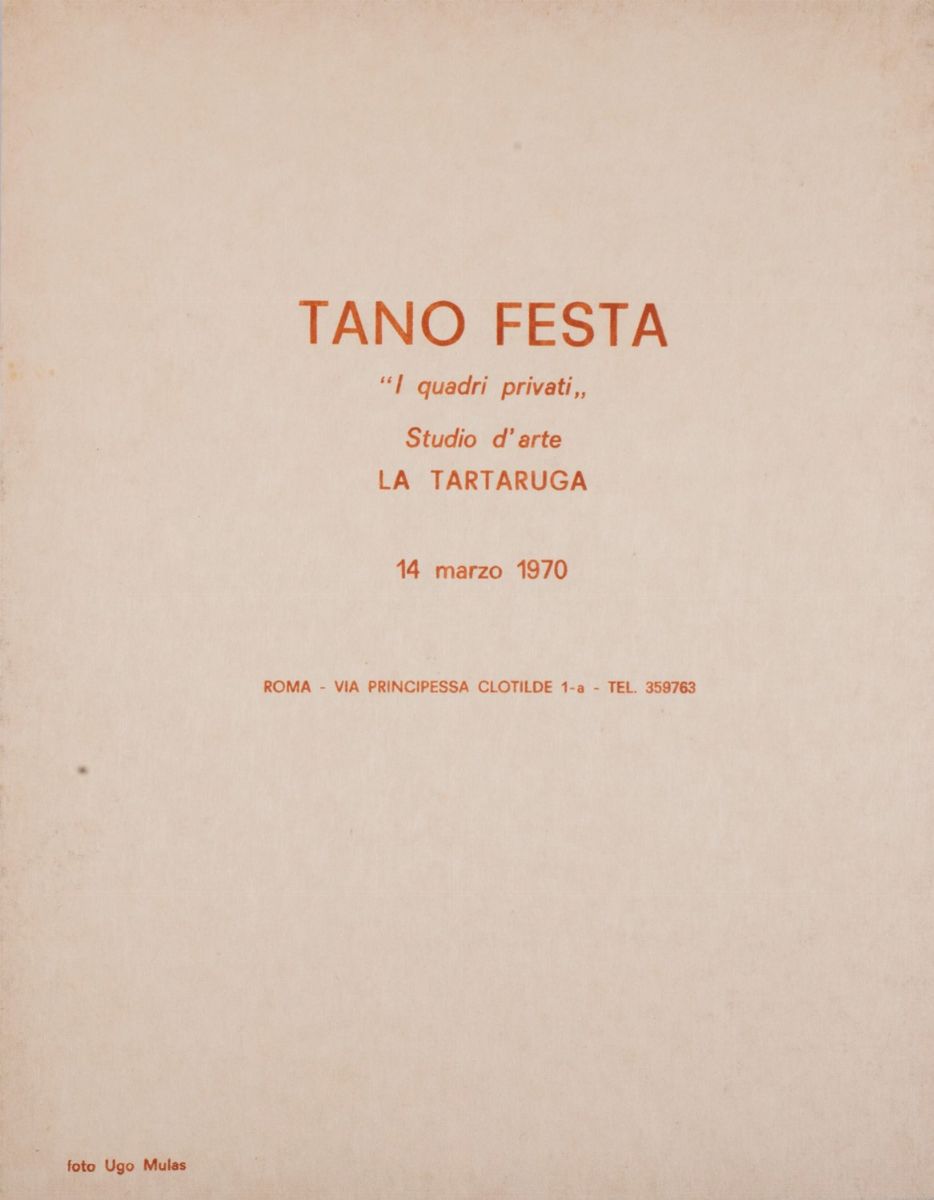 70 copie dell'invito alla mostra personale, galleria La Tartaruga, Roma marzo 1970, con una fotografia dell'Autore sul fronte scattata da Ugo Mulas