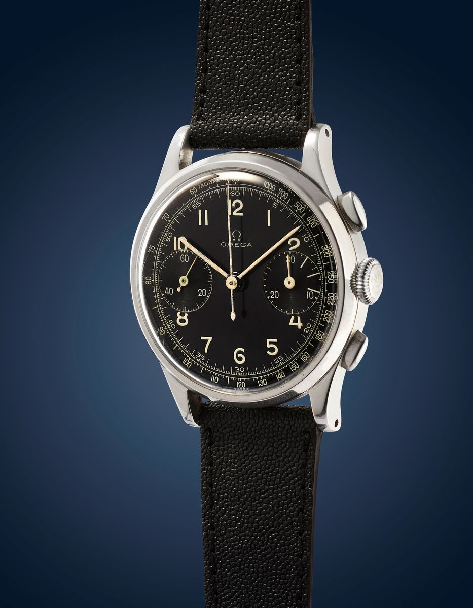 Note: Il calibro 33.3 di Omega é uno dei movimenti cronografici piú ricercati mai stati realizzati. Prodotto originariamente da Lemania nel 1933 per cronografi monopulsante, fu ridisegnato a fine anni 30 da Omega per essere alloggiato nei propri cronografi a due pulsanti piú importanti.
