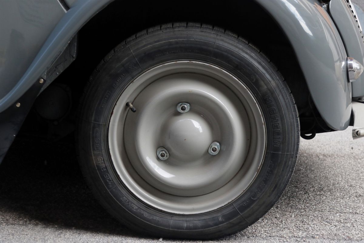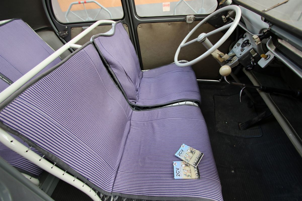 La 2CV, fu fortemente voluta dal dirigente Citroën, Pierre-Jules Boulanger che, in seguito ad un viaggio in Auvergne a metà degli anni 30, notò l’assenza di automobili nelle campagne e decise quindi di ideare una vettura per i contadini, dando ai progettisti indicazioni ben precise; la vettura che voleva mettere in commercio, infatti, doveva essere economica, capace di trasportare 4 persone, avere un buono spazio di carico, consumare poco ed essere in grado di attraversare i campi senza subire troppe sollecitazioni. Agli inizi del 1939 i primi prototipi furono pronti con il nome di T.P.V. ma, a causa della guerra, la progettazione fu abbandonata e tutti i modelli distrutti. Solo nel dopoguerra Boulanger decise di riprendere in mano il progetto, affidandolo allo scultore e designer italiano Flaminio Bertoni, per riuscire a rendere più gradevole l’aspetto esteriore dell’auto. Il modello definitivo della 2CV fu presentato dalla casa francese nel 1948, al Salone dell’automobile di Parigi. Il primo impatto con il pubblico non fu molto favorevole, a causa delle sue inusuali forme arrotondate ed ondulate; i giornalisti ebbero parole dure verso il nuovo modello, ma bastarono pochi mesi e l’auto divenne un best-seller, diventando una delle vetture più vendute al mondo. La sua produzione durò addirittura fino al 1990. Per avere un’idea del successo enorme, basti pensare che, dopo pochi mesi dalla sua presentazione, si crearono liste d’attesa di ben tre anni e che, nel 1950, la produzione era passata dalle 4 unità alle 400 al giorno. Tra un restyling e l’altro, con interventi anche di meccanica, la Citroën 2CV riuscirà a vendere oltre 5 milioni di esemplari in tutto il mondo tra il 1948 e il 1990. La 2CV ebbe anche un’importante attività sportiva. Iniziò nel 1955 con la partecipazione alla Mille Miglia, proseguendo nel 1958 con la 24 Ore di Hockenheim, dove la casa francese schierò due esemplari nella categoria delle microvetture, per non parlare del raid Parigi-Kabul-Parigi, organizzato direttamente da Citroën negli anni ‘70, che ottenne un successo incredibile. La Citroën 2CV divenne ben presto uno stile di vita, grazie al suo look retrò ma nello stesso tempo simpatico, seppe attirare intere generazioni di appassionati, diventando uno dei veicoli simbolo del movimento “hippy”.L’autoTargata Padova d’origine, la Citroën 2CV AZ, telaio no. 8435328 è un esemplare del 1956, anno in cui la 2CV raggiunse il traguardo dei 500.000 esemplari prodotti. È nel classico (ed unico disponibile) colore grigio originale ed è un esemplare di uno dei primi restyling dell’utilitaria francese. Infatti tra il 1955 e il 1956 la casa madre presentò alcuni aggiornamenti, tra cui: l’arrivo dei lampeggiatori posteriori, novità alle dotazioni di comando secondari e migliorie al motore, grazie all’aumento del rapporto di compressione.