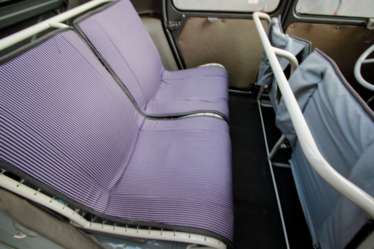 La Citroën 2CV, telaio no. 8435328 è una versione AZ, la prima variante ufficiale dal modello di debutto, detto A. La novità più importante è nel motore più grande da 425 cc che, grazie ad un peso totale di soli 498 kg, le consente di raggiungere i 70 km/h. Tra le altre caratteristiche della AZ va ricordata la frizione centrifuga. La AZ non sostituì la A, ma semplicemente la affiancò. La AZ venne prodotta dal 1954 al 1960, anno in cui tutta la gamma di modelli 2CV venne rivoluzionata. La 2CV è la prima piccola berlina a trazione anteriore, con un motore a 2 cilindri raffreddato ad aria, un cambio a quattro marce (per la prima volta di serie in Citroën) e quattro ruote indipendenti con soluzioni tecniche semplici, leggere e innovatrici. La Citroën 2CV AZ, telaio no. 8435328, è stata sottoposta nel 2008 ad un restauro relativo alla carrozzeria ed alla tappezzeria, nel rispetto della configurazione originale. Monta un portellone del bagagliaio in lamiera, del modello 1957. L’esemplare, certificato ASI, per età e tipo, può essere iscritto alle più importanti gare di regolarità per auto storiche, dove sarà una presenza inusuale, competitiva nella sua categoria e, come sempre, confortevole per il pilota.