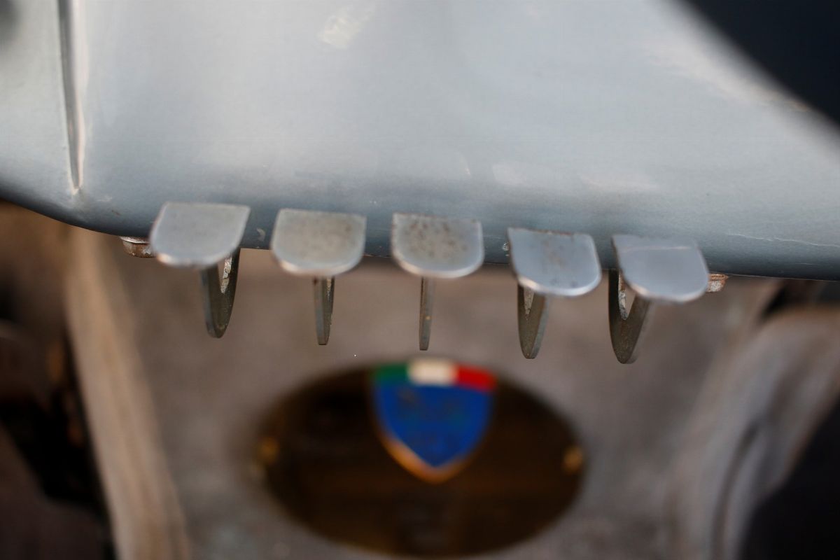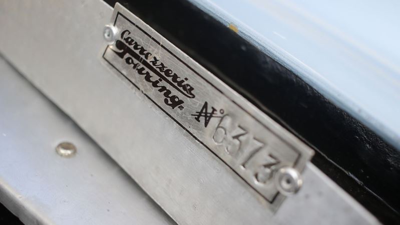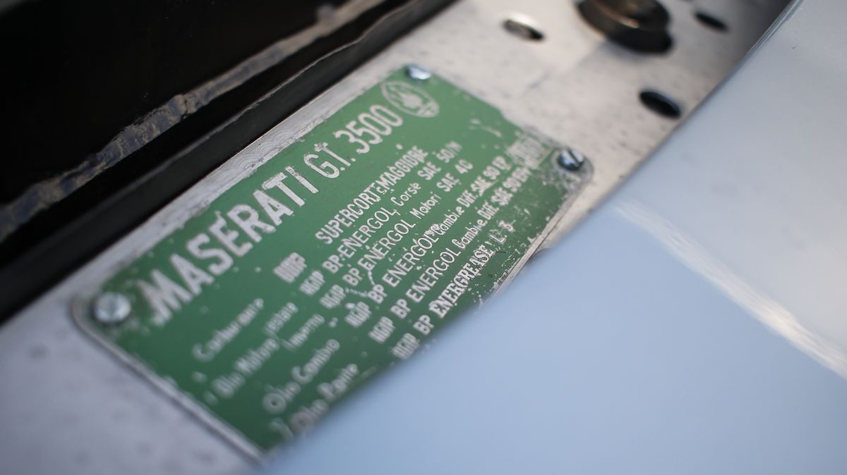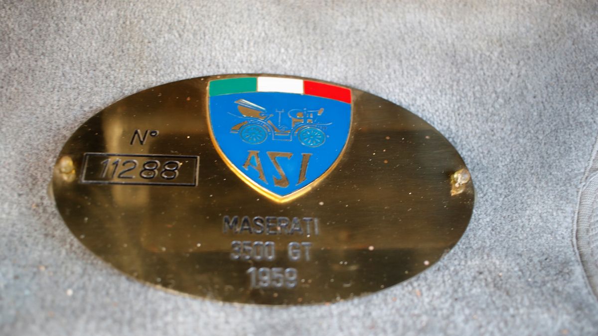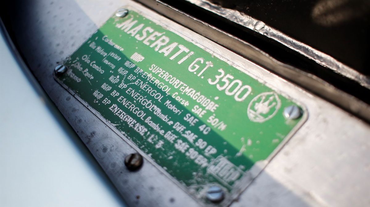 La Maserati 3500 G.T. (Touring), chassis no. AM101*368* è stata immatricolata il 24 marzo 1960, con targhe (nere) Milano, che ancora conserva; così come il libretto di circolazione ancora a pagine con copertina verde. Ha avuto solo due trasferimenti di proprietà successivi ed è sempre stata, comunque, un’auto “di buona famiglia”. È stata sottoposta ad una totale revisione delle parti meccaniche una decina di anni fa e, da allora, ha percorso solo 150 Km, percorsi per mantenere la meccanica in efficienza. Lo stato generale molto buono, la vettura è matching number. Si tratta di un’auto eccellentemente conservata nel suo colore azzurro metallizzato e priva di ruggine: un’occasione eccezionale per i collezionisti che cercano vetture sane ma amano il fascino della patina delle vetture conservate. Alcuni piccoli lavori di dettaglio agli interni sono da eseguire, a causa degli inevitabili segni del tempo.