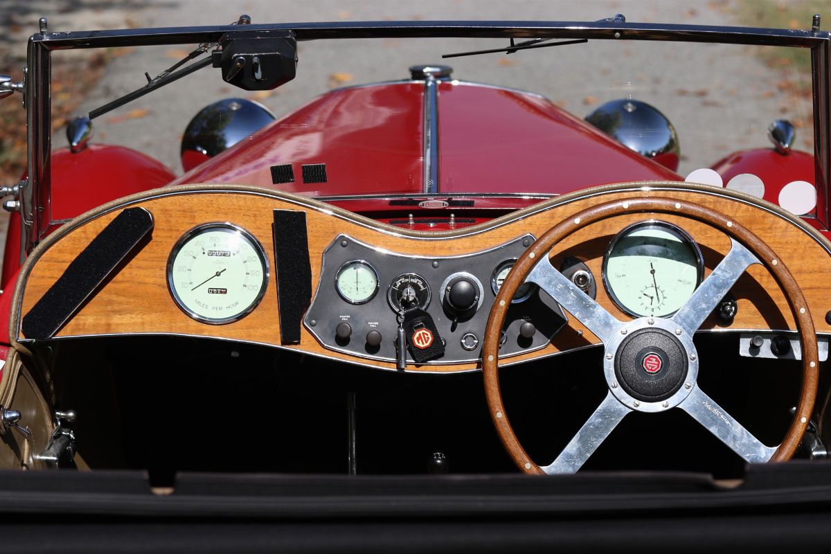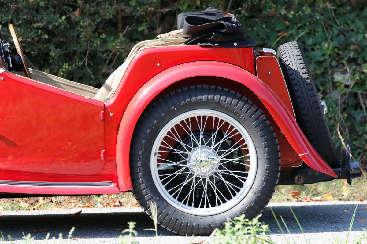 La MG TB, chassis no. TB0481 fu consegnata nel 1939 al suo primo proprietario: il dipartimento di Polizia del Kent, immatricolata con la targa GKL68, che ancora conserva. Molte furono le MG, in servizio presso la Polizia; si ha notizia di almeno una decina di MG TB in dotazione al dipartimento del Kent. L’uso presumibile per la nostra è quello di “pattuglia”. Tutte queste auto ebbero una vita lunga e intensa, sovente accumulando grandi quantità di km percorsi, dovendo “servire” nel particolare periodo della guerra, che concedeva poche spese e poco ricambio. Secondo la FIVA, il veicolo venne costruito nel 1938, con specifiche standard del modello TB e venne esportata negli Stati Uniti negli anni ’60. Negli anni più recenti la vettura è giunta in Italia dove è stata completamente rivista ed ha partecipato intensamente alle più importanti competizioni per auto d’epoca nelle mani del penultimo proprietario, noto pilota, campione nella regolarità. Tra queste gare: tre Mille Miglia, Targa Florio, Gran Premio Nuvolari. La vettura è perfettamente funzionante e si presenta completamente preparata per le gare di regolarità, con sonde per strumenti alle ruote. Il motore d’origine è preparato e con carburatori SU maggiorati, il cambio ha la modifica Moss, il serbatoio è stato trattato con Tankerite. L’auto monta pneumatici nuovi e performanti e un volante Moto-Lita in legno a quattro razze. Regolarmente immatricolata in Italia, ha le più importanti certificazioni. Con l’auto, nel lotto, importanti ricambi, come i carburatori originali e i semiassi. La roadster inglese per eccellenza, vettura anteguerra molto rara, molto divertente da guidare ed efficace nei risultati in gara. Gode di un buon coefficiente Mille Miglia di 1,60 e, come anteguerra, ha il vantaggio di piazzarsi presto sulla linea di partenza.