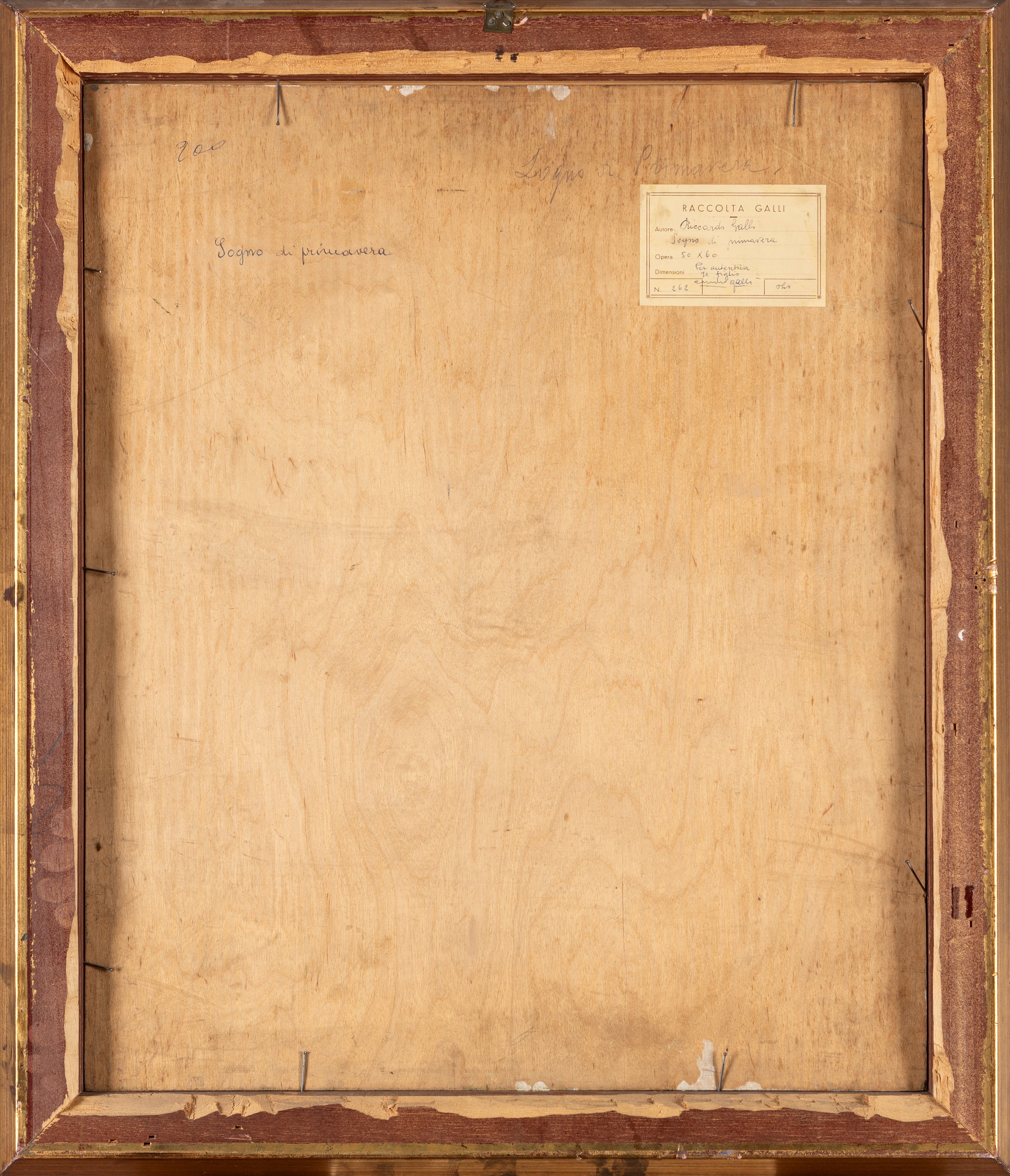 al retro, sul compensato, etichetta della Raccolta Galli con titolo e autentica del figlio