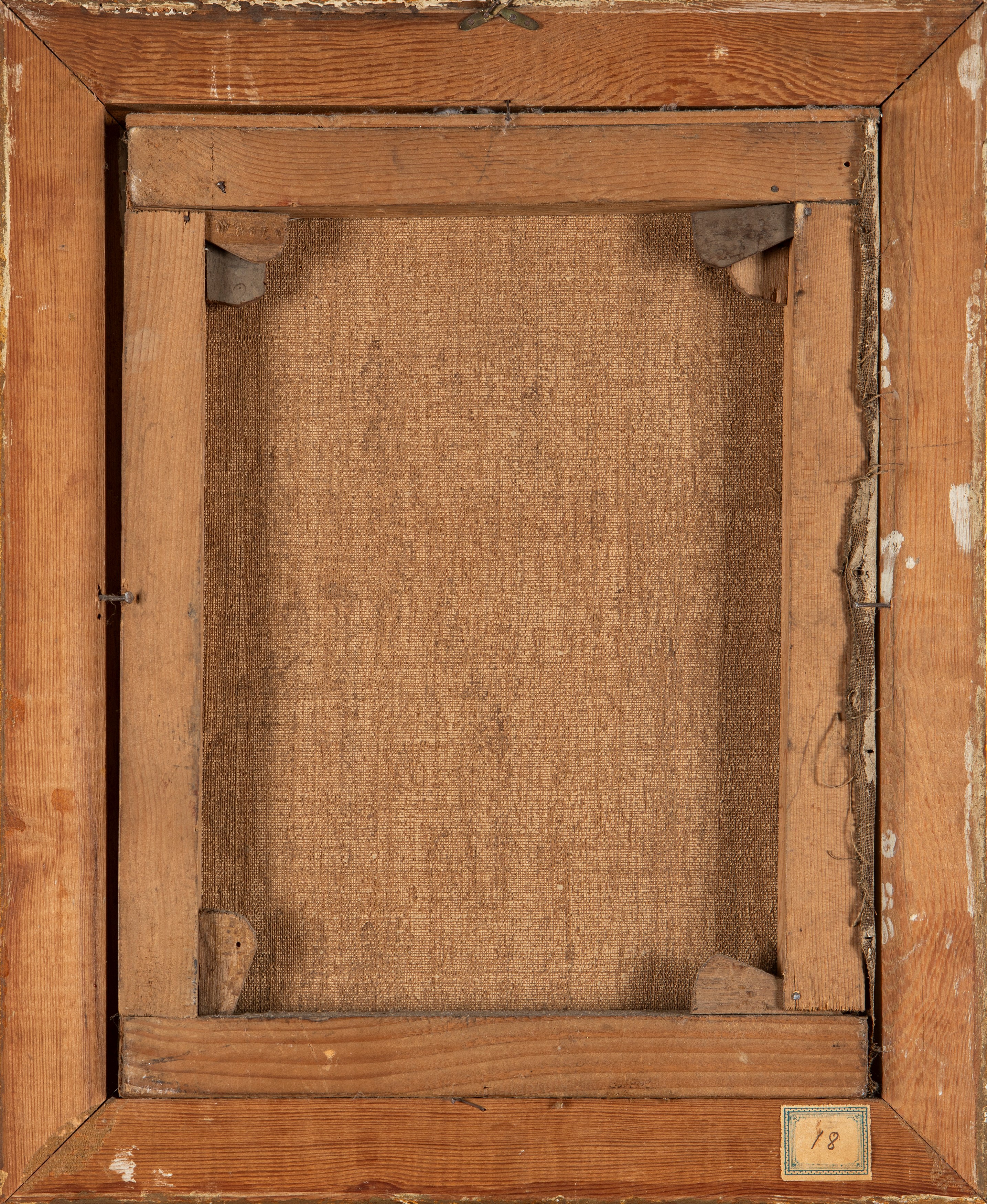 al retro, sulla cornice, etichetta di inventario con numero 18