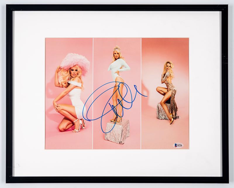 Foto autografata di Pamela Anderson, certificata Beckett e in cornice (senza vetro) 43x53 cm circa. Pamela Denise Anderson (nata a Ladysmith, Canada, il 1° luglio 1967) è un'attrice, modella e showgirl canadese naturalizzata statunitense. Pamela Anderson ha raggiunto la fama internazionale negli anni '90. La sua carriera è decollata dopo essere stata notata a una partita di football. È apparsa sulla copertina di Playboy per la prima volta nell'ottobre 1989 e in totale ha posato sulla copertina della celebre rivista 14 volte, più di qualsiasi altra modella. Il suo ruolo più celebre è stato quello della bagnina C.J. Parker nella popolare serie TV Baywatch, a cui ha partecipato dal 1992 al 1997. Il suo iconico costume da bagno rosso e la sua figura atletica in corsa sono diventati un simbolo dell'estetica e della sensualità degli anni '90. Nel 2024, ha ricevuto il plauso della critica e la sua prima candidatura al Golden Globe come migliore attrice in un film drammatico per la sua interpretazione nel film The Last Showgirl.