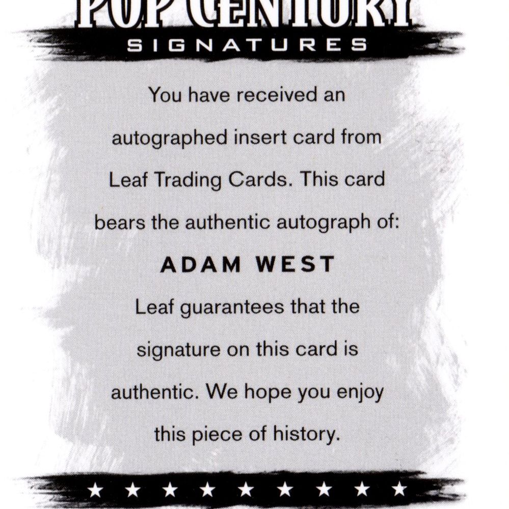 Card autografata dall'attore Adam West, prodotta e certificata dalla Leaf nel 2012.