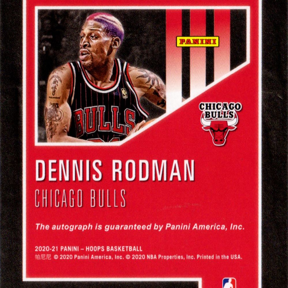 Card autografata da Dennis Rodman, prodotta e certificata dalla Panini America nel 2020.