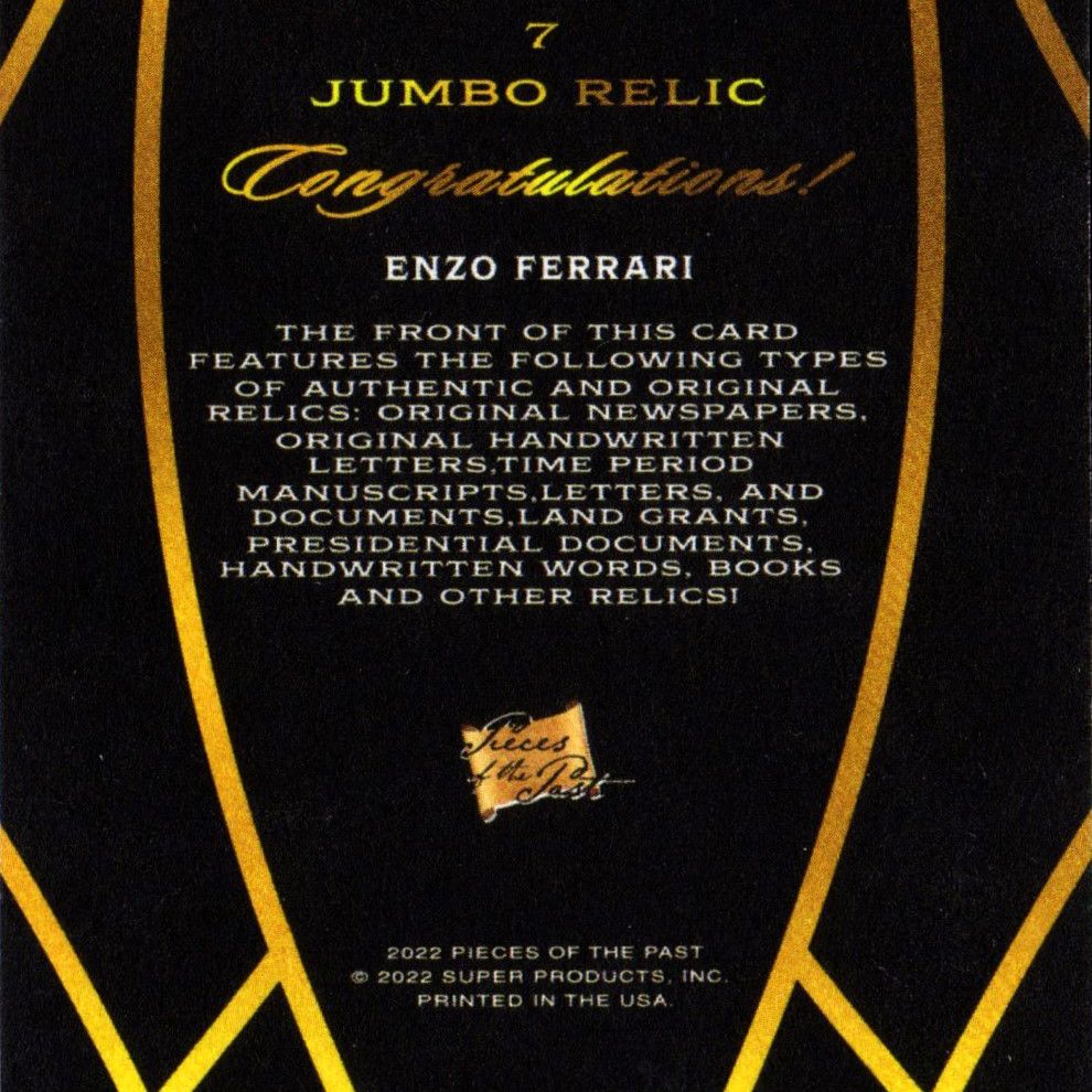 Card relic di Enzo Ferrari, prodotta e certificata dalla Pieces of the Past nel 2022.