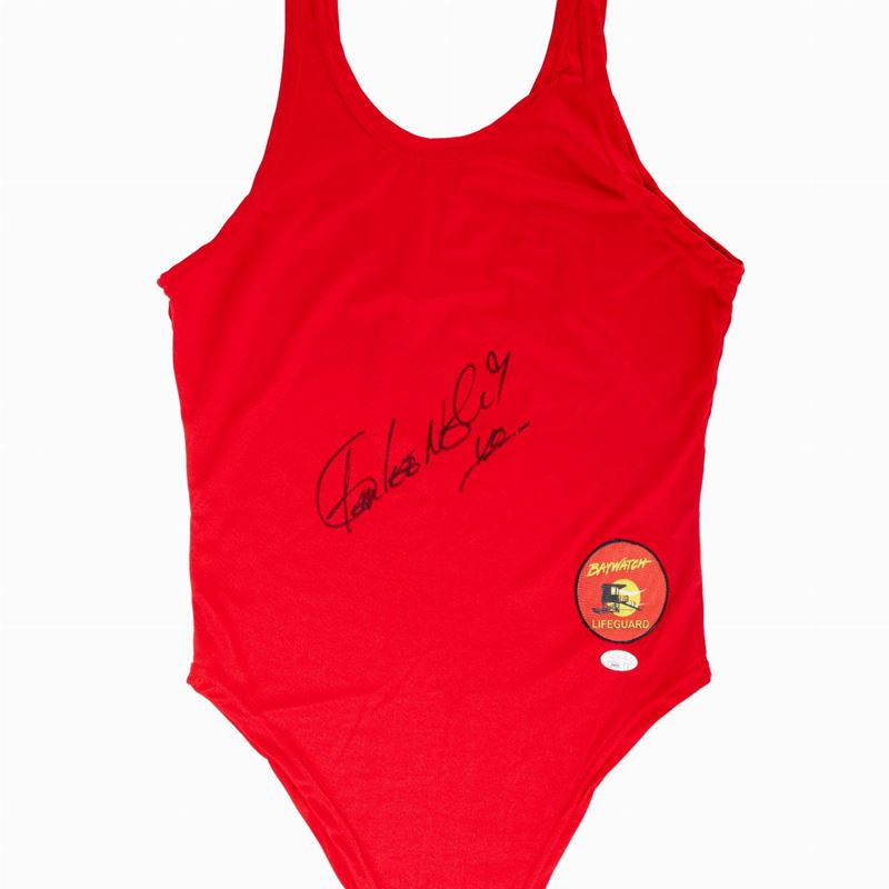 Costume da bagno di Baywatch autografato da Gena Lee Nolin, con certificato di autenticità della PSA. Costume autografato, certificato ma non utilizzato.