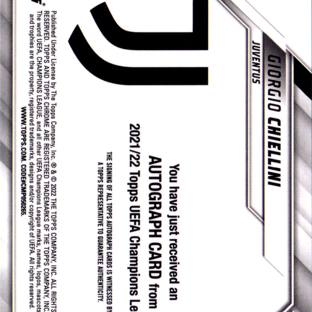 Card autografata da Giorgio Chiellini, prodotta e certificata dalla Topps nel 2021.