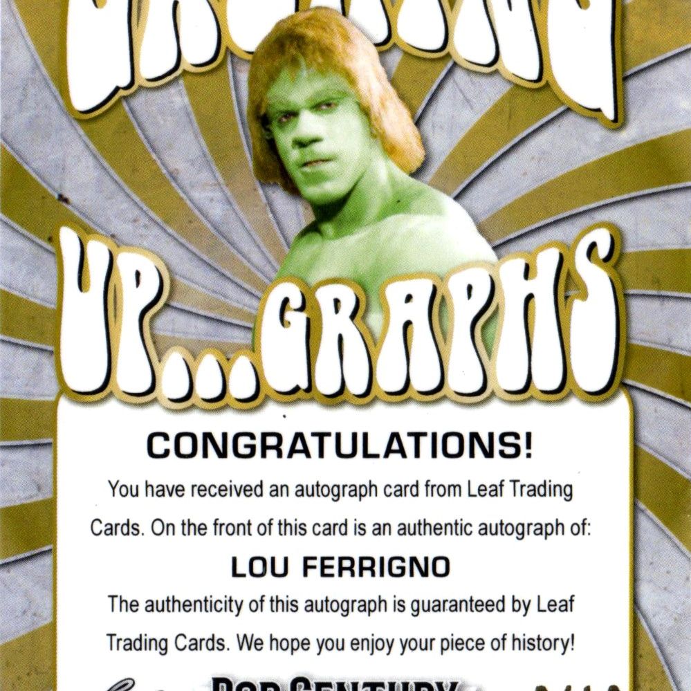 Card autografata dall'attore Lou Ferrigno, prodotta e certificata dalla Leaf con tiratura 09/10 nel 2022.