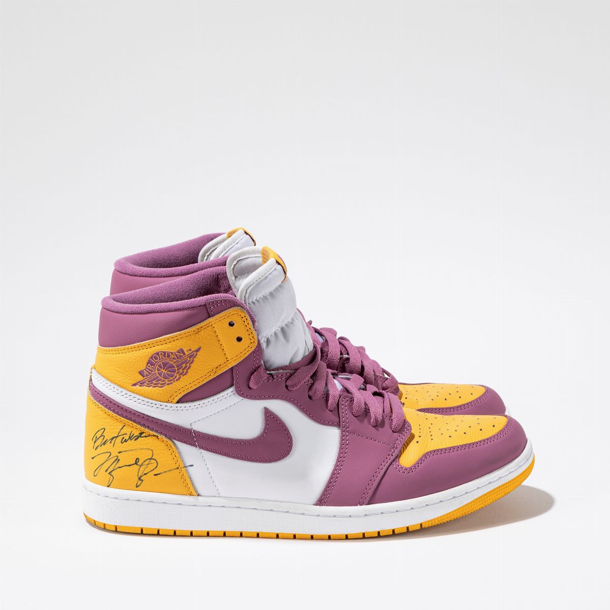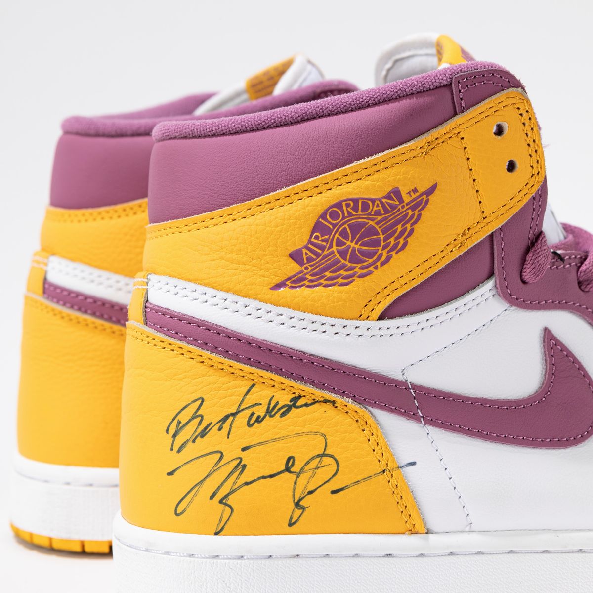 Jordan 1 Retro High OG Brotherhood autografate da Michael Jordan con la scritta "Best Wishes Michael Jordan"