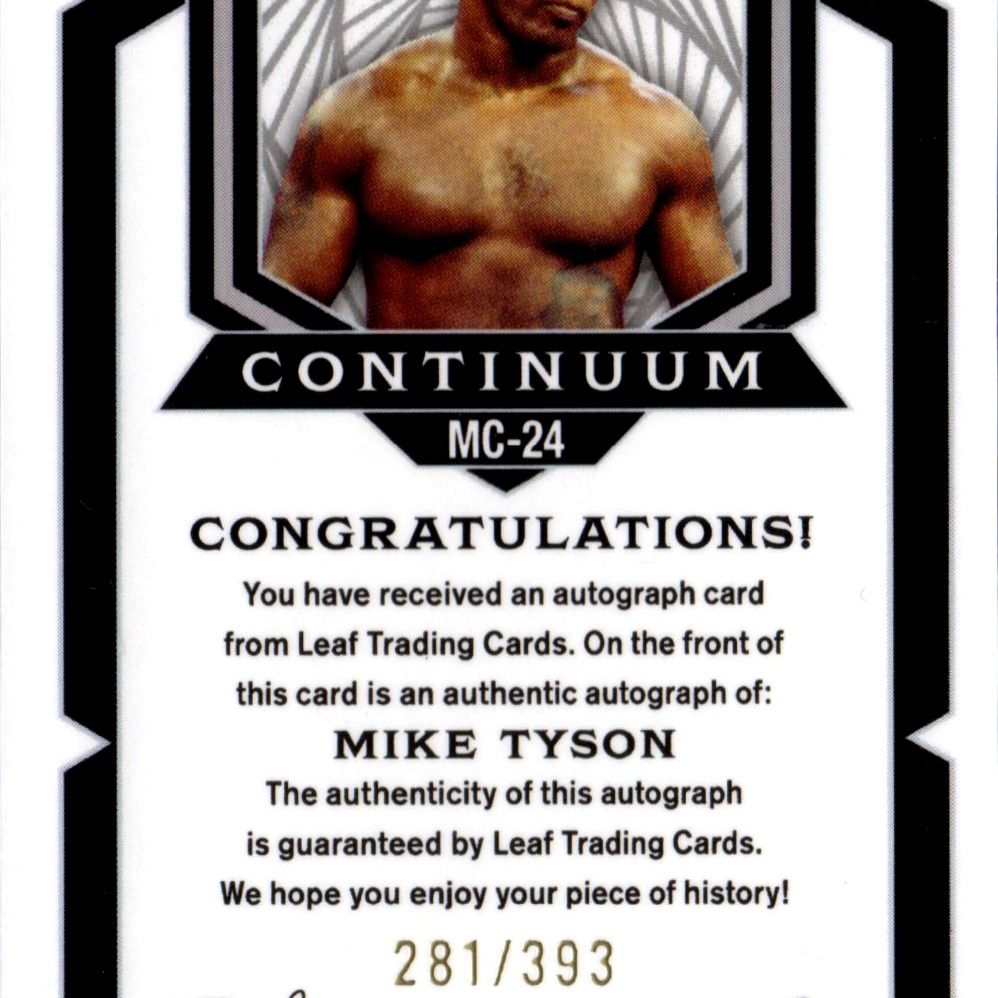Card autografata da Mike Tyson, prodotta e certificata dalla Leaf nel 2023 con tiratura 281/393.