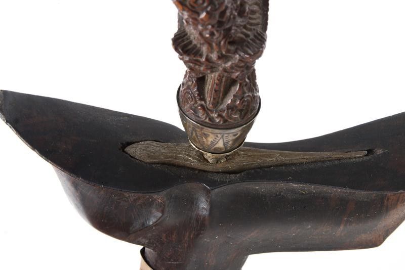 datazione: XIX Secolo provenienza: Giava, Il primo con lama consumata, con difetti. Ukiran in legno leggermente scolpito, mendak in metallo. Warangka in legno con pendok in lamina d'ottone finemente sbalzato a motivi floreali. Giava centrale, Surakarta. L'altro con lama probabilmente già del XVIII secolo a fili lisci in pamor. Bel ukiran in legno finemente scolpito con selut in metallo inciso. Warangka in due legni diversi con fascia al cambio in metallo. lunghezza 42 - 43.7 cm.