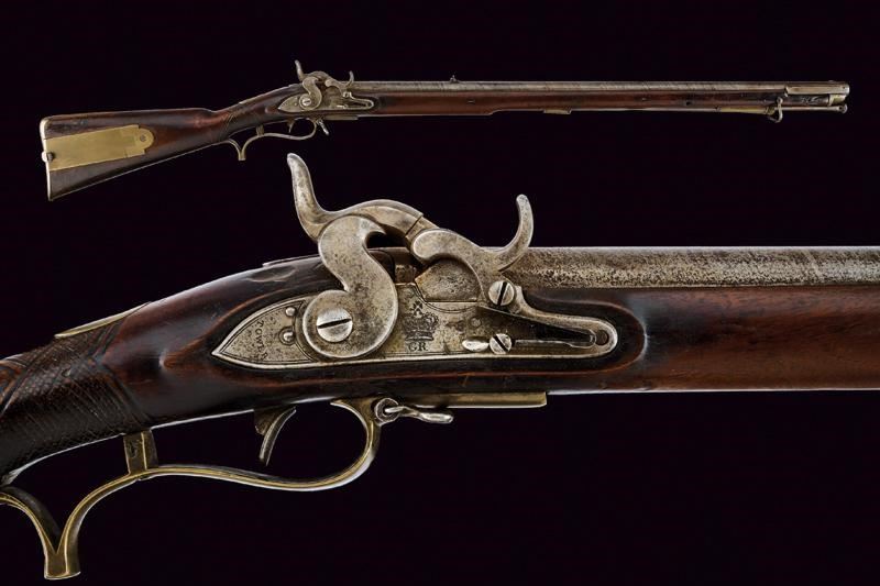Canna tonda rigata cal. 16,7 mm. Mirino, alzo regolabile in due altezze, guida d'innesto per baionette. Batteria a molla in avanti marcata con corona sormontante le lettere "GR", punzone broad arrow coronato, e marcatura "TOWER", delineature. Cane con pic