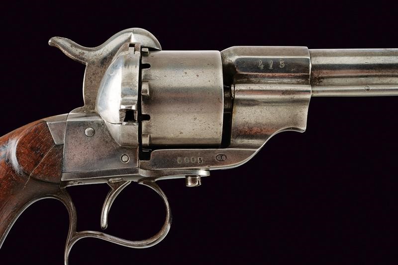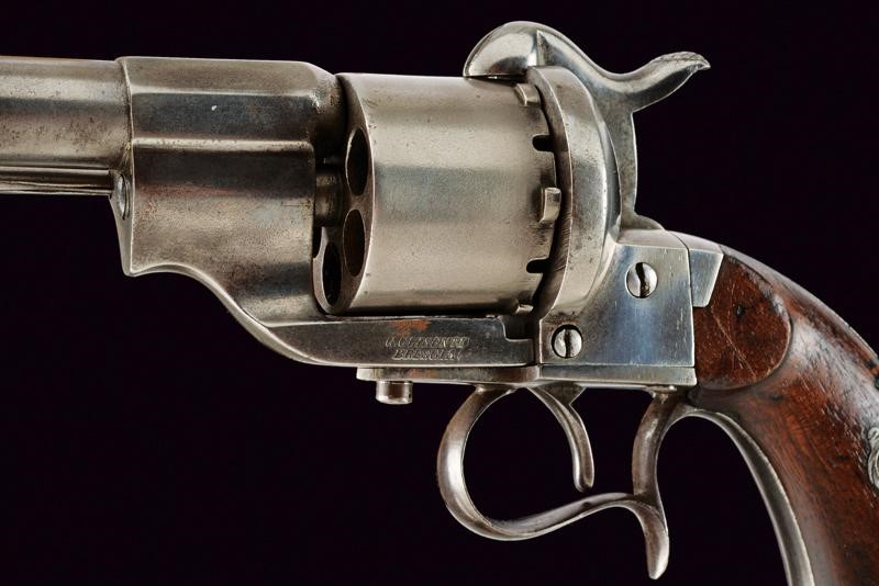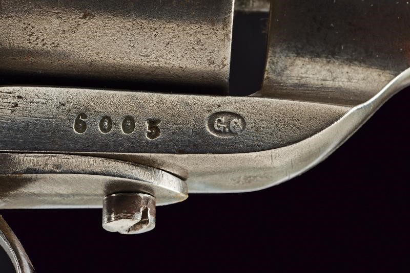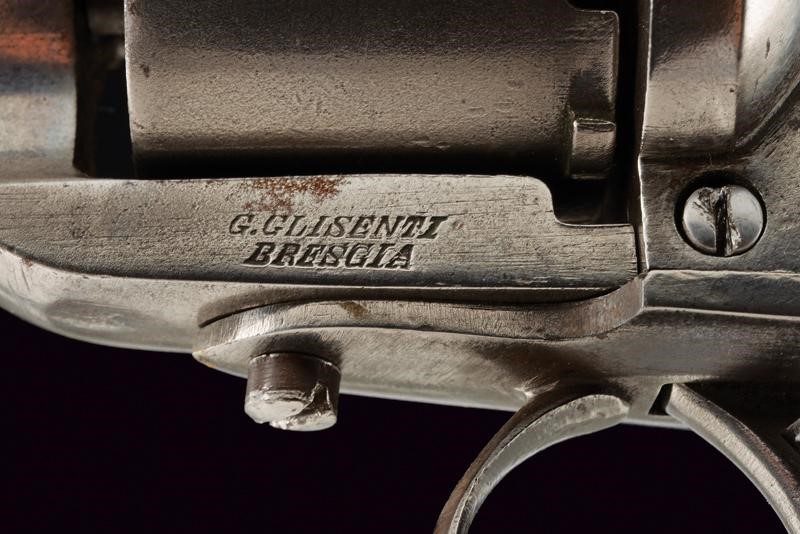 Canna cilindrica rigata, dotata di mirino, cal. 11 mm. Anima pulita, rigatura visibile, qualche macchia all'interno. Tamburo a sei colpi. Meccanica funzionante. Punzone "G.G." al castello, marcatura "G. GLISENTI BRESCIA" ben visibile. Guancette in legno.