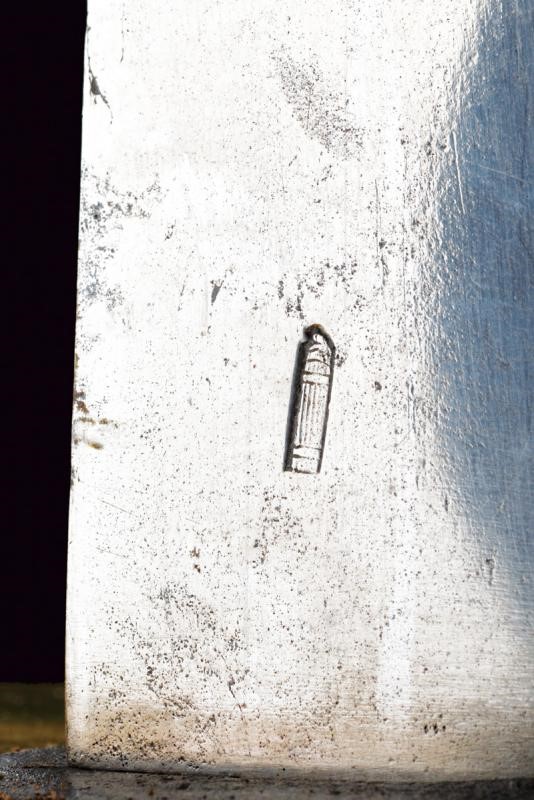 Lama dritta a un filo e breve controfilo, a facce piane, con qualche lieve intaccatura ma sostanzialmente in buono stato. Recante al forte un punzone a fascio littorio sormontato dal berretto frigio. Il fornimento in ottone, di ampie dimensioni con largo elso ellittico. Il lato di parata lavorato a lobi e timbrato su entrambe le facce: "10" su un lato, "13" sull'altro. Il lato di controguardia con timbro "DUMONT". La guardia a due rami, quello principale forse con piccola riparazione, quello secondario piatto, lavorato a volute e con diramazioni. L'elemento di collegamento fra i due rami effigiante un fascio littorio sormontato dal Berretto frigio. Impugnatura con rivestimento in vecchia manica di cuoio e spirale di trecciola in rame. Cappetta corta. Fodero in legno (cuoio di produzione più recente) con fornimenti in ottone a due campanelle. Per cavalleria pesante e dragoni.